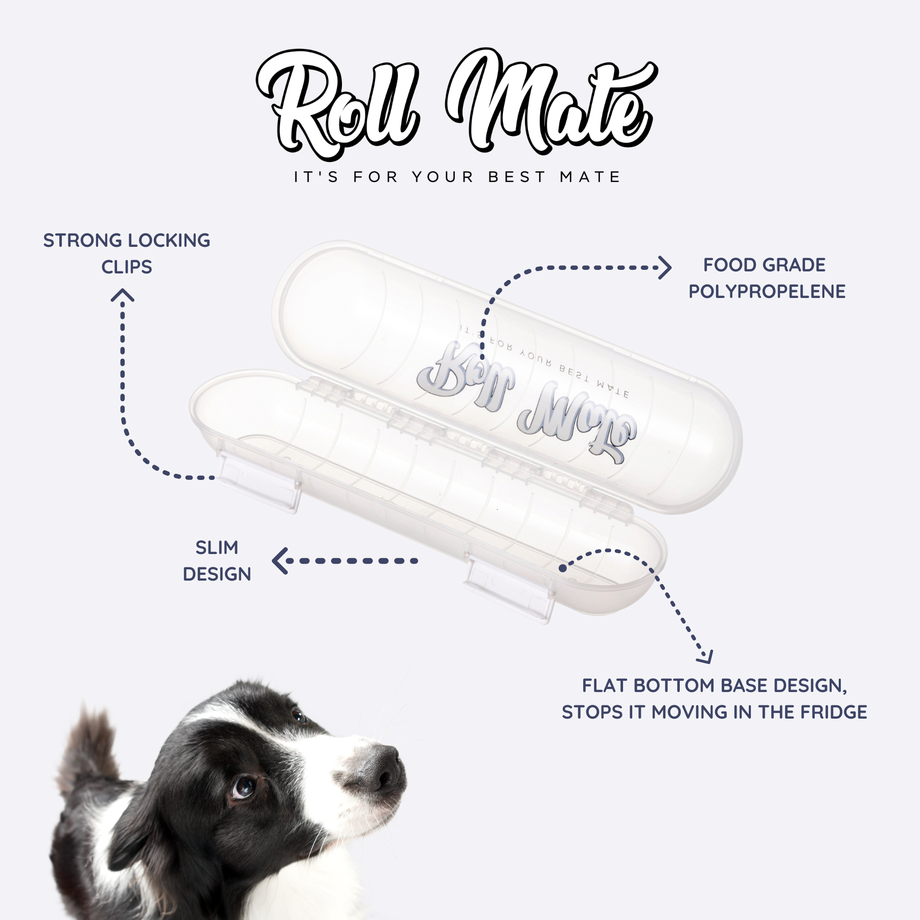 Roll Mate dog roll containers are designed to hold dog roll and we recommend avoiding any use of the container to store any food for human consumption.